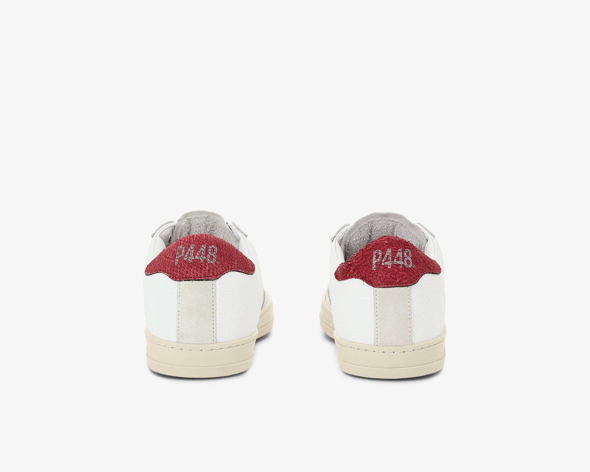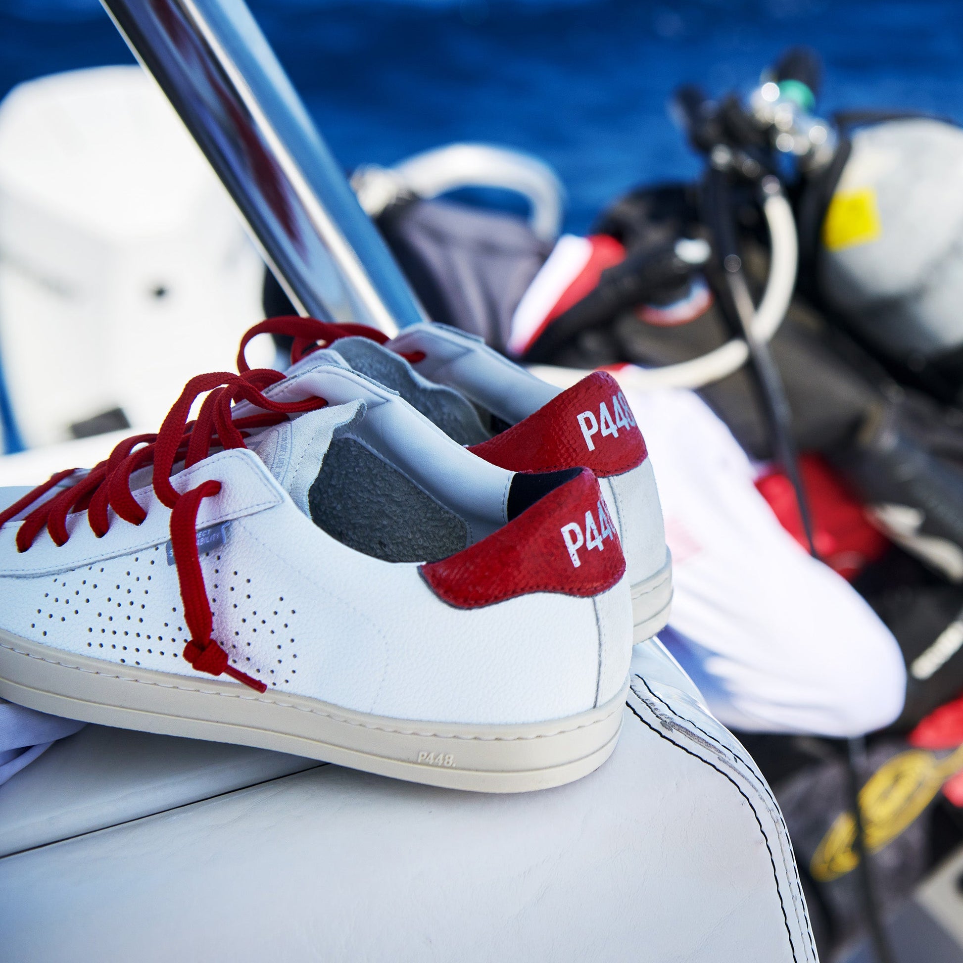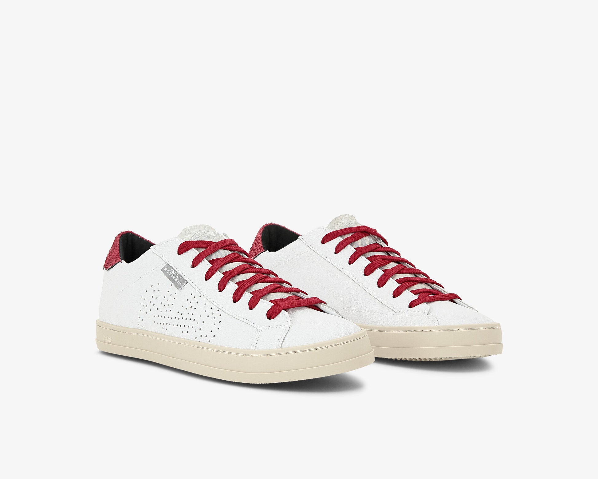 Meet the first-to-market collection of sneakers made from invasive species skins, part of our sustainability initiative, Project Sustainability™, and a step towards our commitment to making 30% of product offerings sourced from earth-conscious materials. Starting with our most-loved silhouette, the John, made with leather from the invasive Lionfish. The John Lionfish White/Lava features a white pebbled recycled leather upper, toe, & trim with an off-white recycled suede tongue, and anchored by a lava red lionfish skin heel tab with off-white suede accents. Finished with lava red recycled cotton laces.